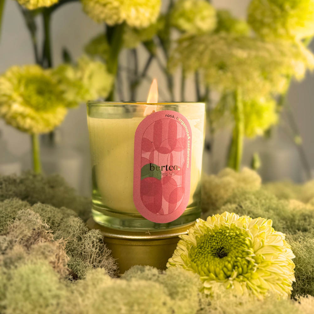 Um tributo aos 5 anos de bertco, essa vela aromática carrega a essência da primavera em uma fusão inesperada e sofisticada.